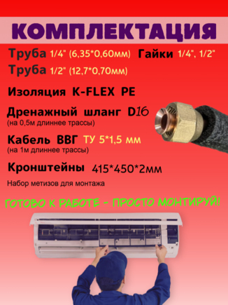 Не упустите возможность приобрести качественный комплект для монтажа, который обеспечит корректную и длительную работу вашего кондиционера. Независимо от вашего опыта в установках подобного оборудования, с этим набором вы легко и быстро справитесь с задачей.