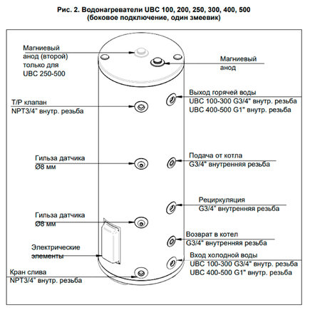 • Второй змеевик в верхней части (у моделей UBC DC)