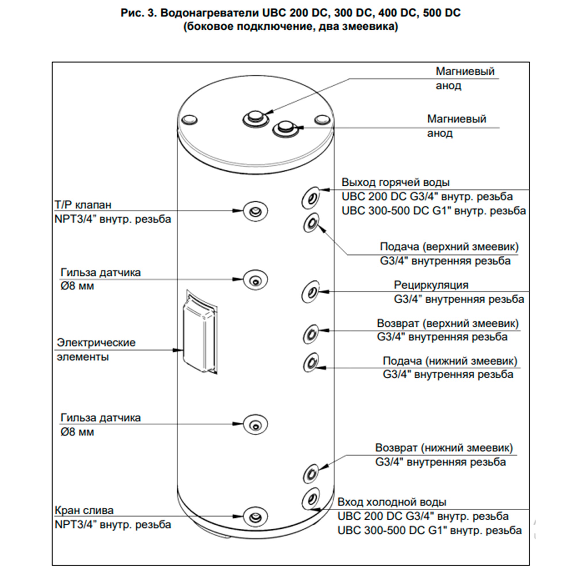 *У всех моделей от 250 литров и у моделей с двумя змеевиками установлены два магниевых анода