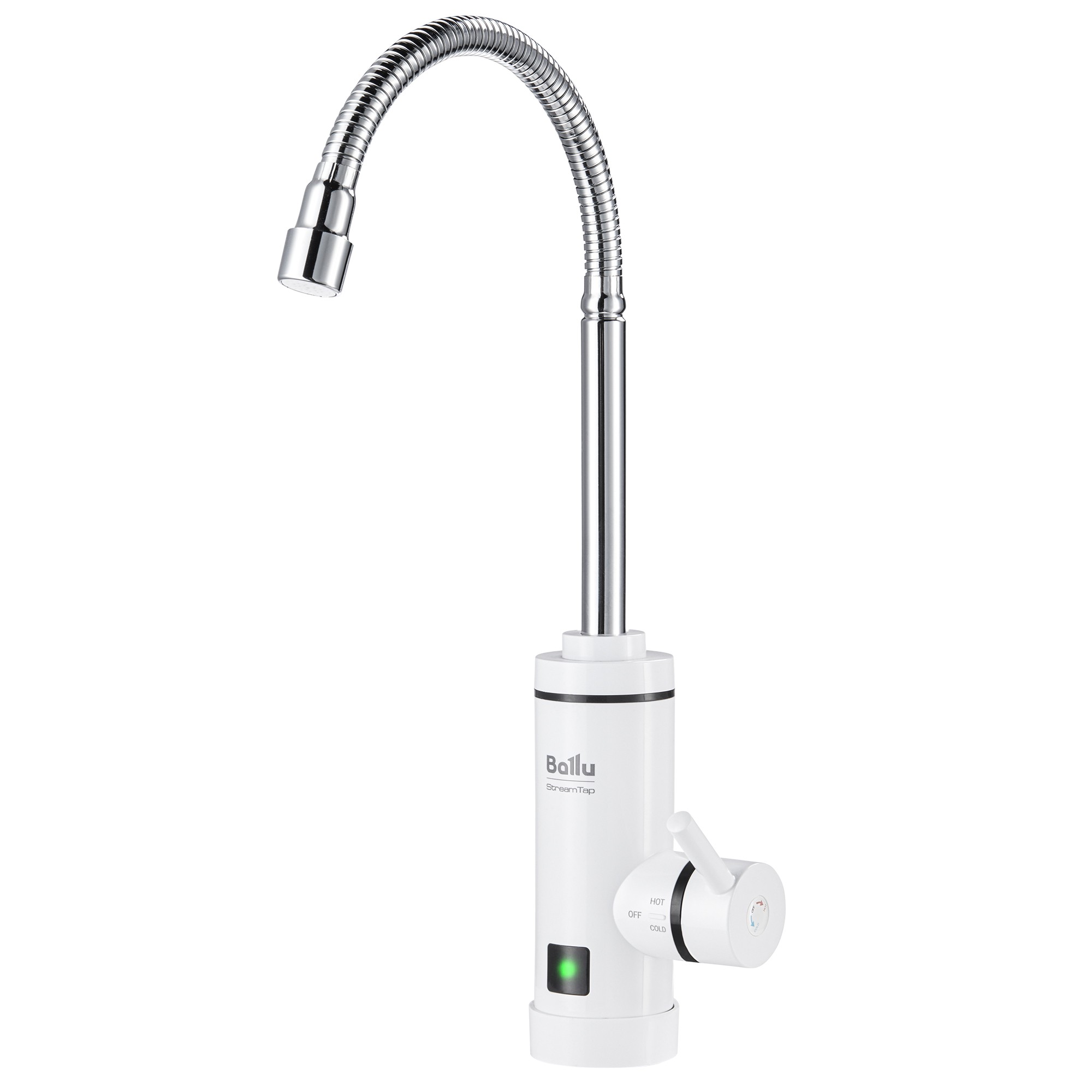 Электрический проточный водонагреватель StreamTap обеспечит мгновенный нагрев воды в квартире, на даче или офисе в течение всего года, исключая зависимость от сезонно-профилактических и ремонтных работ систем теплоснабжения. Компактная модель предназначена для установки вместо обычного смесителя. Прибор прост в монтаже. Чтобы воспользоваться горячей водой уже в день покупки прибора, достаточно заменить привычный кран на водонагреватель и подключить его к розетке.